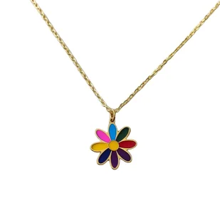 Rainbow Flower to wyjątkowy naszyjnik, który wnosi do dziecięcej biżuterii pełen pakiet kolorów i pozytywnej energii. Tęczowa, emaliowana zawieszka w kształcie kwiatuszka przyciąga wzrok i nadaje stylizacjom uroczego, radosnego charakteru. Model wykonany został z wysokiej jakości stali chirurgicznej 316L, dzięki czemu jest trwały, odporny na wodę i idealny do codziennego noszenia. Łańcuszek o długości 40 cm z dodatkowymi 3,5 cm regulacji pozwala łatwo dopasować naszyjnik do wieku i komfortu dziecka. Naszyjnik Rainbow Flower to świetny wybór na prezent – na urodziny, Dzień Dziecka, święta czy jako uroczy upominek bez okazji.