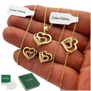 ➡️ ZŁOTY KOMPLET BIŻUTERII NASZYJNIK SERCE KOLCZYKI BRANSOLETKA NA ROCZEK 925 Produkt najwyższej jakości ⭐⭐⭐⭐⭐ ✨ Przedstawiamy Państwu elegancki komplet biżuterii damskiej wykonany z najwyższej jakości srebra próby 925. Ten wyjątkowy zestaw zawiera łańcuszek o splocie singapur, zawieszkę oraz kolczyki do kompletu. Serca dodatkowo są wysadzone wysokiej jakości cyrkoniami diamentowanymi. Dzięki starannej pracy rzemieślników, każdy element zachowuje swoją finezyjność i subtelną elegancję. ✨ Komplet biżuterii jest idealny na codzienne noszenie.