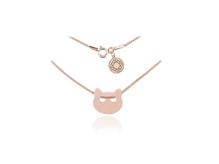 Naszyjnik kotek w całości wykonany i zaprojektowany w naszej pracowni jubilerskiej. W całości wyprodukowany ze srebra pr. 925 pokrytego różowym złotem. Wymiary kotka - ok. 1,3 x 1 cm Długość łańcuszka - do wyboru.