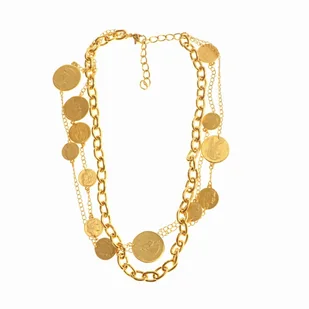 NASZYJNIK Z MONETAMI (C15/MON/24AU) Potrójny naszyjnik. Długość naszyjnika 45cm i 7cm przedłużki. Naszyjnik pozłacany.