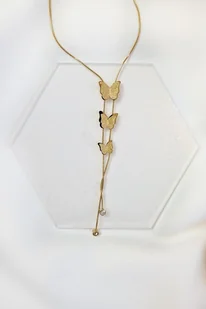 Naszyjnik z Motylkami Złoty Wymiary: 0.5x5x2 Wprowadź delikatność i subtelne detale do swojej garderoby za pomocą bransoletki, naszyjnika i kolczyków z motyl...