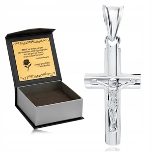 PIĘKNY SREBRNY KRZYŻYK KOMUNIJNY RODOWANY KRZYŻ 925 + PUDEŁKO Z GRAWEREM