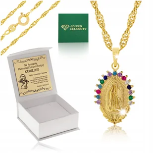 Piękny Złoty Łańcuszek Singapur + Medalik Matka Boska 18K Komunia Chrzest