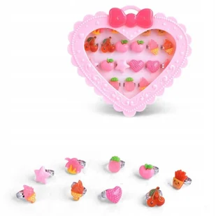 Serduszko Zestaw Pierścionków Dla Dziewczynek Kolorowe Serce Zestaw 12Szt
