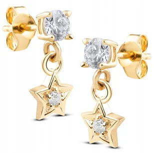 ŚLICZNE ZŁOTE KOLCZYKI Z KRYSZTAŁKAMI I GWIAZDKAMI 14KT 585 + DEDYKACJA