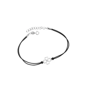 Odkryj naszą srebrną bransoletkę 925 na czarnym sznurku z motywem koniczynki szczęścia. Ta piękna biżuteria łączy w sobie szlachetność srebra próby 925 z ele...