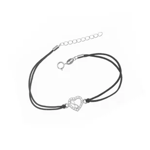 Srebrna bransoletka 925 czarna sznurkowa Serce Nieskończoność