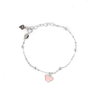 Srebrna bransoletka dla dziewczynki z łańcuszkiem typu ankier, koralikami i różową Myszką Miki. Wykonana z najwyższej jakości srebra próby 925. Fabrycznie nowa.