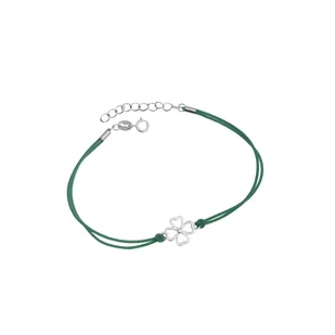 Srebrna bransoletka 925 Koniczynka Szczęścia sznurkowa zieleń