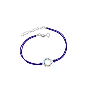 Odkryj elegancję i kolor naszej srebrnej bransoletki z okrągłym wisiorkiem, wykonanej z najwyższej jakości srebra próby 925. Stylowy granatowy sznurek doskon...