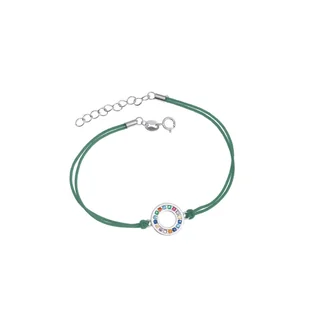 Odkryj elegancję i kolor naszej srebrnej bransoletki z okrągłym wisiorkiem, wykonanej z najwyższej jakości srebra próby 925. Stylowy zielony sznurek pięknie ...