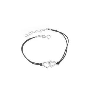 Odkryj naszą elegancką srebrną bransoletkę 925 na czarnym sznurku z motywem połączonych serc. Ta piękna biżuteria łączy w sobie szlachetność srebra próby 925...