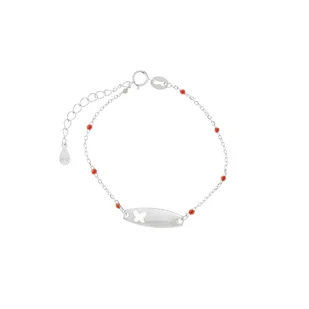 Srebrna bransoletka dziecięca 925 z blaszką i motylkiem to uroczy prezent, idealny dla dzieci, charakteryzuje ją produkt: Srebro próby 925 – bransoletka wyko...