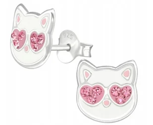 Srebrne Kolczyki 925 Dla Dziewczynki Kotki Wkrętki Dla Dzieci Sztyft