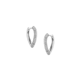Stylowe i oryginalne srebrne kolczyki o próbie 925, w kształcie trójkątnych serc, ozdobione połyskującymi cyrkoniami. Ten nowoczesny design łączy geometryczn...