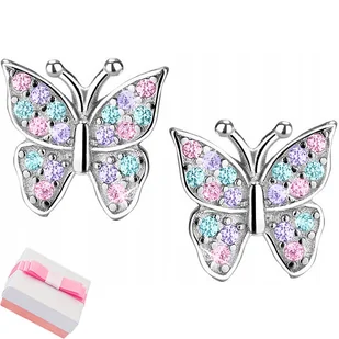 - SREBRNE KOLCZYKI KOLOROWE MOTYLKI DLA DZIECI DZIEWCZYNKI WKRĘTKI SZTYFTY (26/19) ➡️ PARAMETRY: