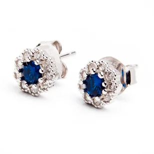 Srebrne kolczyki z granatową cyrkonią. Wykonane z lśniącego srebra próba 925. Fabrycznie nowe.