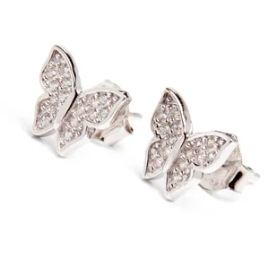 Srebrne kolczyki z motywem motyla udekorowanego białymi cyrkoniami. Wykonane z lśniącego srebra próba 925. Fabrycznie nowe.