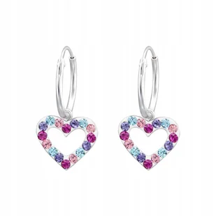 Srebrne Kolczyki wiszące KOLOROWE SERCE 925