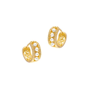 Eleganckie pozłacane kolczyki okrągłe zachwycają subtelnym blaskiem i klasycznym designem. Zdobione lśniącymi cyrkoniami i delikatnymi perełkami, dodają styl...