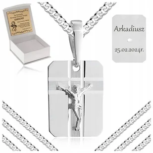 Srebrny ��A��Cuszek Pancerka + Medalik Z Jezusem Pr. 925 Komunia Bierzmowanie