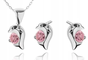 SREBRNY KOMPLET DELFINKI Z RÓŻOWYMI CYRKONIAMI 925