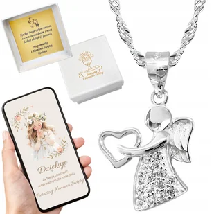 SREBRNY ŁAŃCUSZEK KOMUNIJNY Z ANIOŁEKIEM Z CYRKONIAMI 40CM NA PREZENT 925 ❗️MEGA BONUS❗️ Cyfrowe podziękowania dla gości lub gospodarzy uroczystości – TREND ...