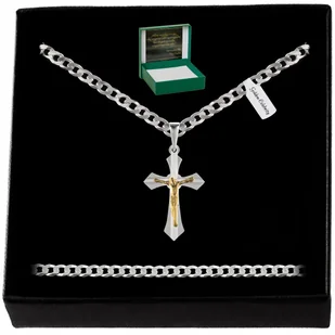 Srebrny Łańcuszek Pancerka+Krzyżyk Pr. 925+Grawer