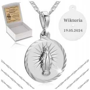 Srebrny Łańcuszek Singapur + Medalik Próby 925 Matka Boska Cudowna + Grawer