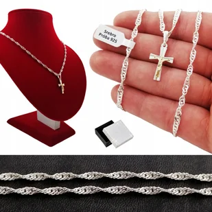 Srebrny Łańcuszek Singapur+Krzyżyk 45Cm Srebro 925