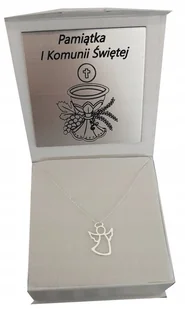 Śliczny łańcuszek komunijny z aniołkiem zapakowany w ozdobne pudełeczko z grawerem Naszyjnik ANIOŁEK anioł celebrytka Naszyjnik długości ok 45 cm Średnica ła...
