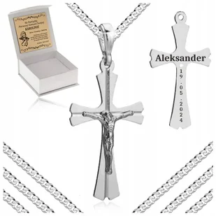 SREBRNY NASZYJNIK NA KOMUNI�� + KRZY��YK Z JEZUSEM 925 + GRAWER DLA CH��OPCA