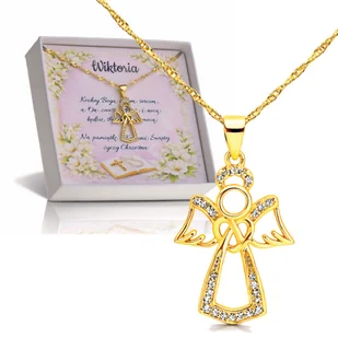 Srebrny 925 pozłacany łańcuszek z aniołkiem to elegancka i symboliczna biżuteria, która podkreśla duchowy charakter ważnych uroczystości. Delikatny aniołek symbolizuje opiekę, miłość i bezpieczeństwo, dlatego doskonale sprawdzi się jako prezent na Komunię, chrzest lub inną wyjątkową okazję. Subtelny połysk pozłacanej powierzchni nadaje całości ponadczasowej elegancji.