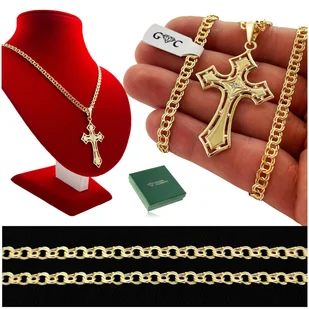GHK 1990B W zestawie: ➡️ Łańcuszek garibaldi ➡️ Zawieszka krzyżyk ➡️ Metka jubilerska Wymiary: Długość łańcuszka: 50 cm (na pozostałych naszych aukcjach dostępne są inne długości) Szerokość łańcuszka: 4,5 mm Zawieszka: