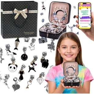 ZESTAW DO ROBIENIA BRANSOLETEK I NASZYJNIKÓW CHARMS 66EL SZKATUŁKA + TORBA + KORALIKI PREZENT DLA DZIEWCZYNKI NA ŚWIĘTA + EBOOK