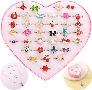 ❤️❤️❤️ ZESTAW 36 PIERŚCIONKÓW + ŁAŃCUSZEK DLA DZIEWCZYNKI ❤️❤️❤️ POMYSŁ NA PREZENT IDEALNY ⭐ W zestawie dodatkowo dodajemy łańcuszek z kolczykami i pierścion...