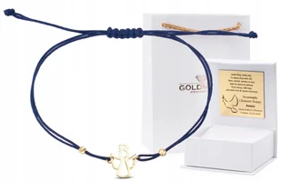ZŁOTA BRANSOLETKA DIAMENTOWANA NA SZNURKU Z ANIOŁKIEM 14KT 585 + DEDYKACJA