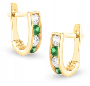 ZŁOTE KOLCZYKI ANGIELSKIE CYRKONIA ZIELONE 585