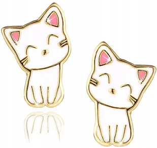 ZŁOTE KOLCZYKI DLA DZIEWCZYNKI KOTKI GRAWER