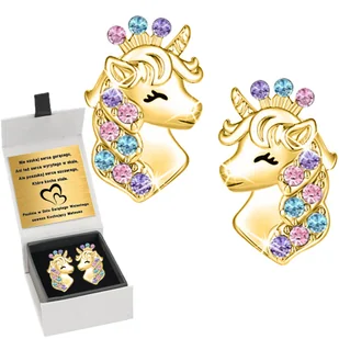 ZŁOTE KOLCZYKI JEDNOROŻCE DLA DZIEWCZYNKI GRAWER