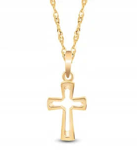 ZŁOTY KRZYŻYK Z ŁAŃCUSZKIEM 585 Złoty komplet, krzyż z łańcuszkiem w całości wykonane ze złota próby 585. Zestaw idealnie nadaje się na takie okazje jak Chrz...