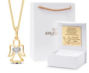 ZŁOTY KOMPLET ŁAŃCUSZEK Z ANIOŁKIEM NA CHRZEST, KOMUNIĘ ŚWIĘTĄ 14KT 585