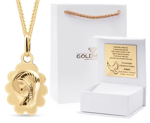 ZŁOTY MEDALIK Z ŁAŃCUSZKIEM 585 Złoty komplet, medalik z łańcuszkiem w całości wykonane ze złota próby 585. Zestaw idealnie nadaje się na takie okazje jak Ch...