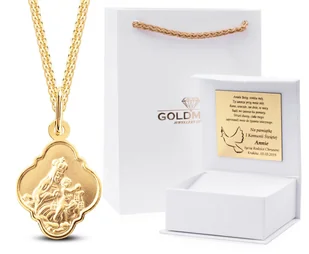 ZŁOTY MEDALIK Z ŁAŃCUSZKIEM 585 Złoty komplet, medalik z łańcuszkiem w całości wykonane ze złota próby 585. Zestaw idealnie nadaje się na takie okazje jak Ch...