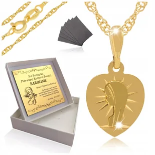 Złoty Łańcuszek Komunijny Matka Boska 925 Grawer