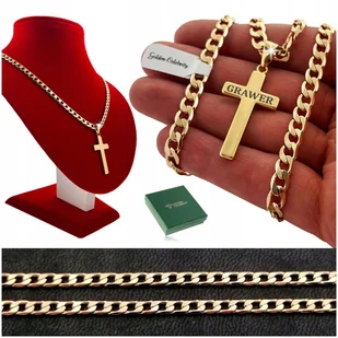 Złoty Łańcuszek + Krzyż 18K Prezent Dla Chłopca Na Komunię Chrzest + Grawer