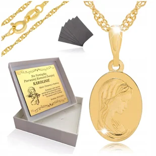 Złoty Łańcuszek Medalik 925 Chrzest Komunia Grawer