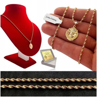 Złoty Łańcuszek Medalik Matka Boska 18K Prezent Na Komunię Chrzest + Grawer