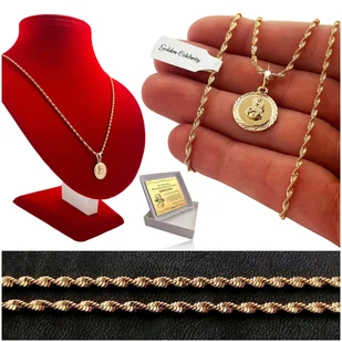 Złoty Łańcuszek Medalik Matka Boska 18K Prezent Na Komunię Chrzest + Grawer
