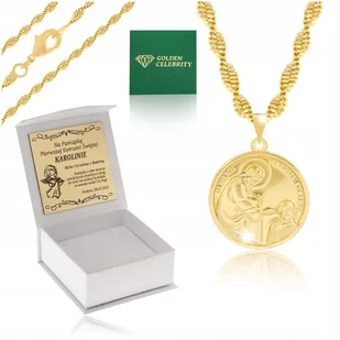 Złoty Łańcuszek + Medalik Matka Boska+Grawer Pamiątka Pierwszej Komunii Św.